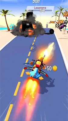 本作突破传统竞速框架,独创战斗竞速模式。玩家在超越对手时可使用场景道具进行攻防对抗,动态物理引擎精准模拟车辆碰撞效果。八种定制机车各具性能特色,从复古街车到未来概念车型满足不同操作偏好,支持改装系统提升极速与操控性。