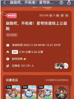通过Keep首页活动入口进入"开拓者奔跑计划"专题页面,选择心仪的实体奖章套装报名参赛。赛事设置不同里程组别,完成所选里程挑战即可获得对应主题的金属收藏奖牌。赛事礼包特别包含星穹铁道限定道具组合,信用点与凝缩以太等资源每日限量发放。